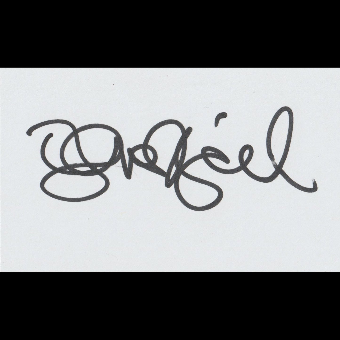 Autograph on Bristol board 7.5x12.5 cm obtained in Paris in February 2024.