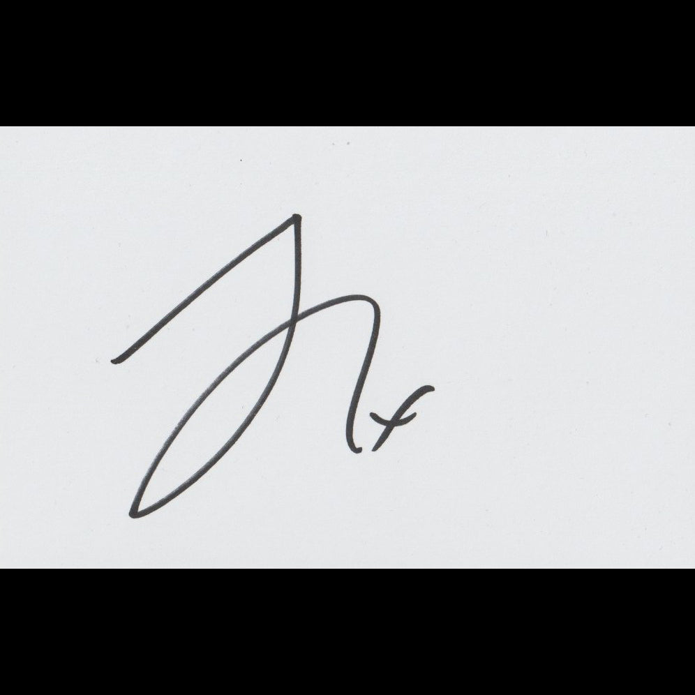 Autograph on bristol board 7.5x12.5 cm obtained in Paris in January 2026.